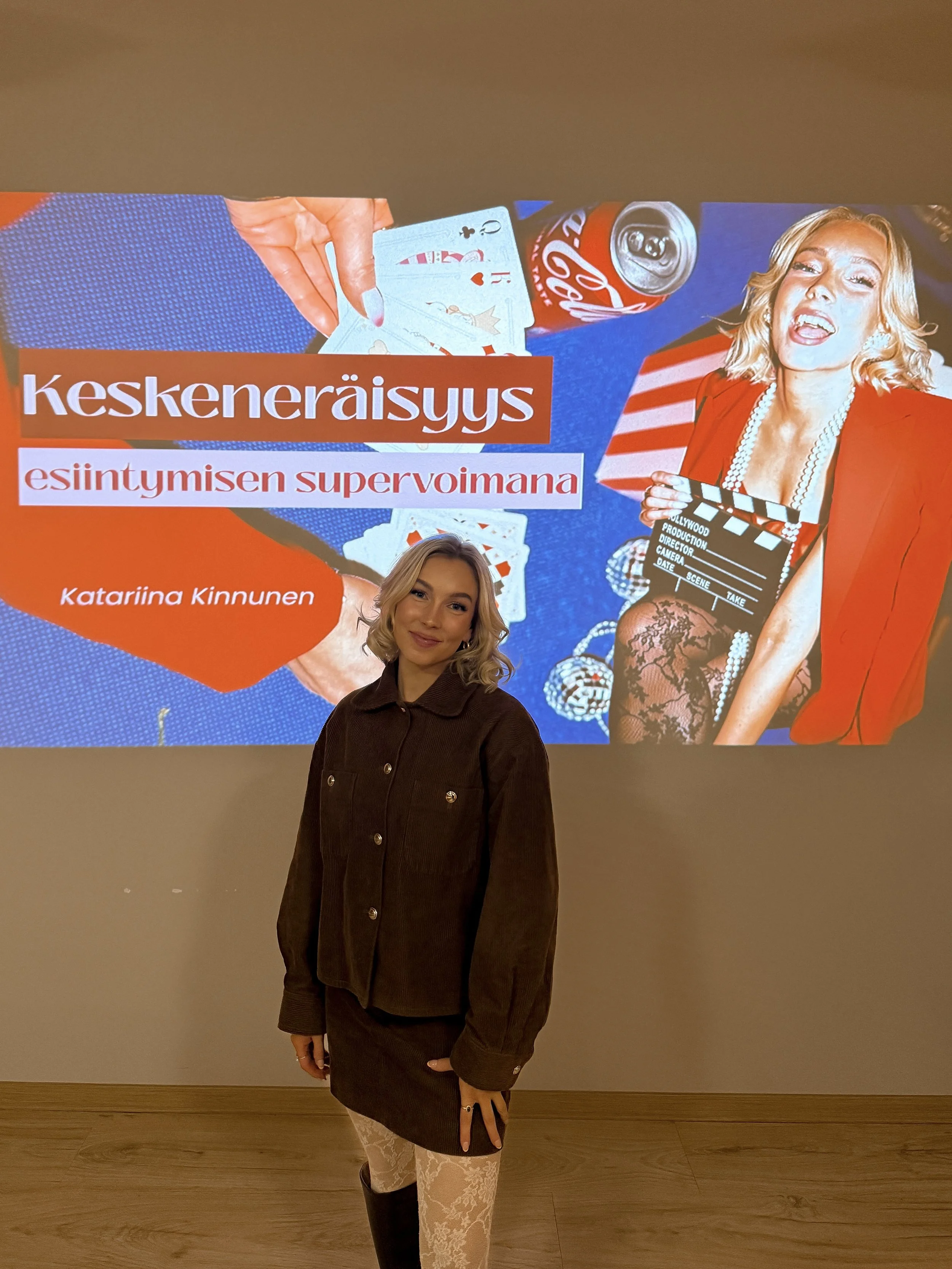 Erityisen hyödyllistä oli oppia hyvän esiintymisen teoriaa käytännössä ja saada kysyä ammattilaiselta. Vaikka harjoitukset tuntuivat aluksi kiusallisilta, ne muuttuivat ryhmän hitsautuessa antoisiksi. Kata loi kannustavan ja turvallisen ilmapiirin.”